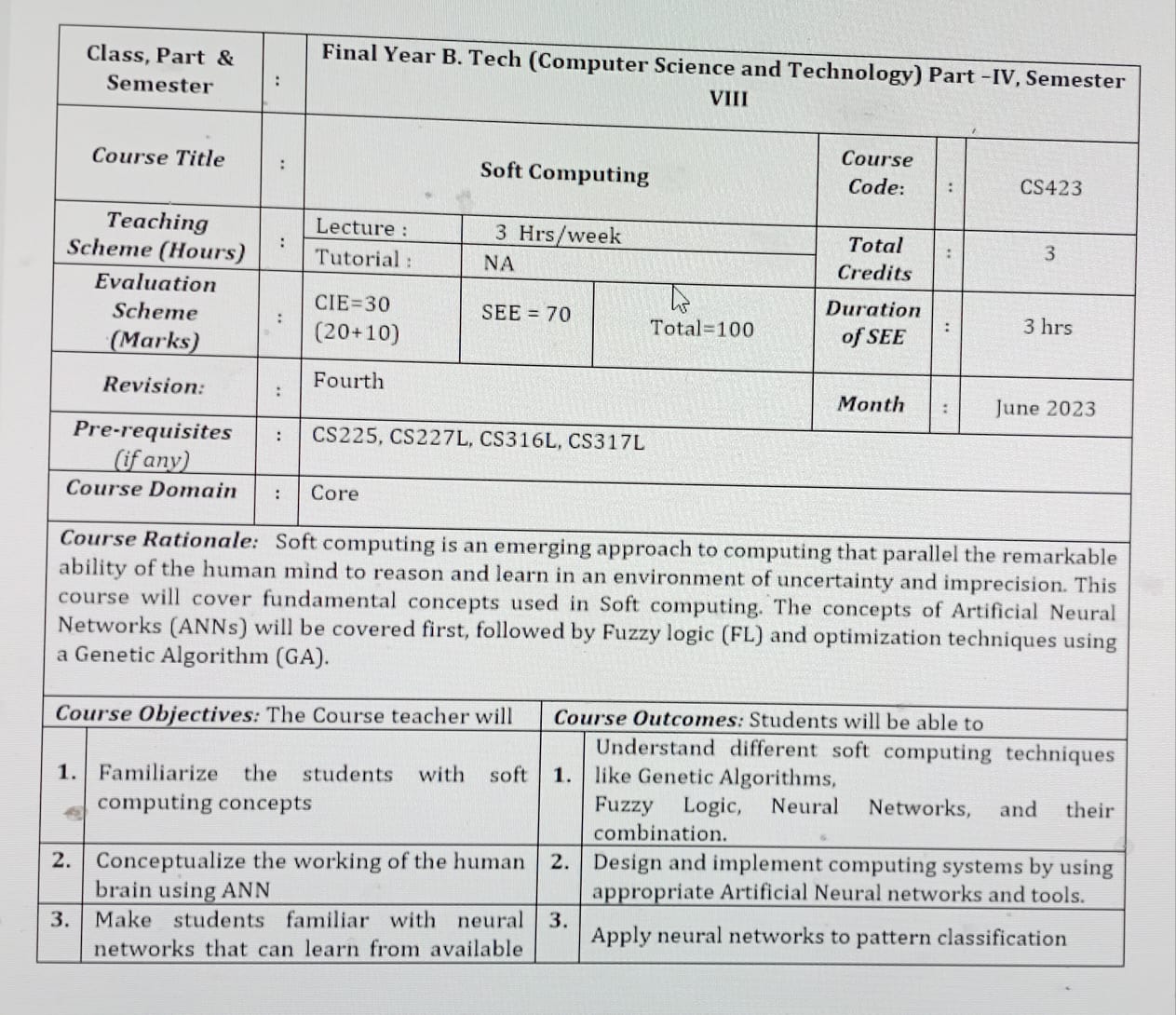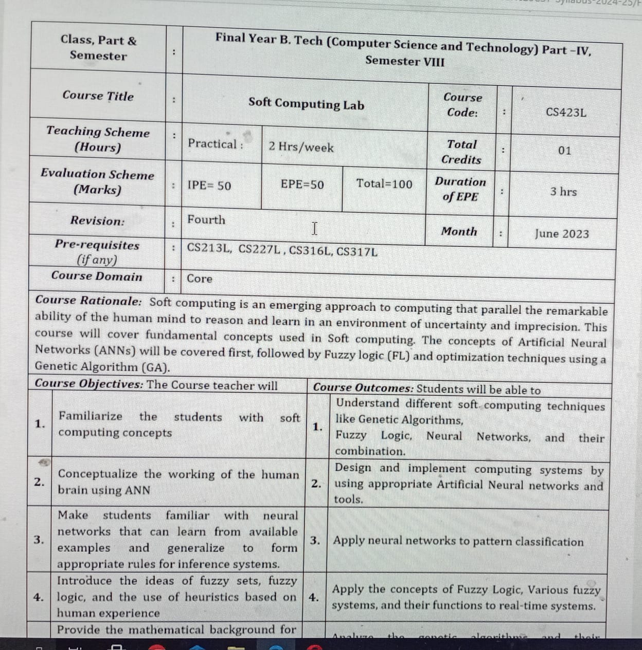 - Apply soft computing techniques to solve engineering or real-life problems.