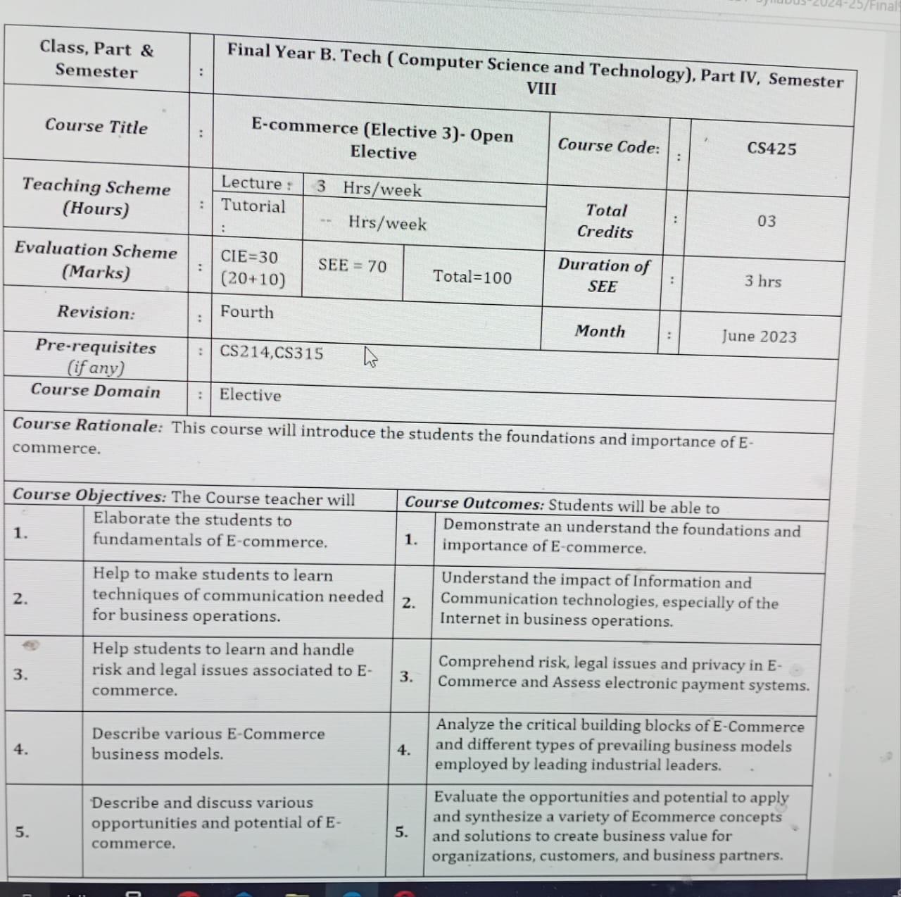 - Â Comprehend risk, legal issues and privacy in ECommerce and Assess electronic payment system
